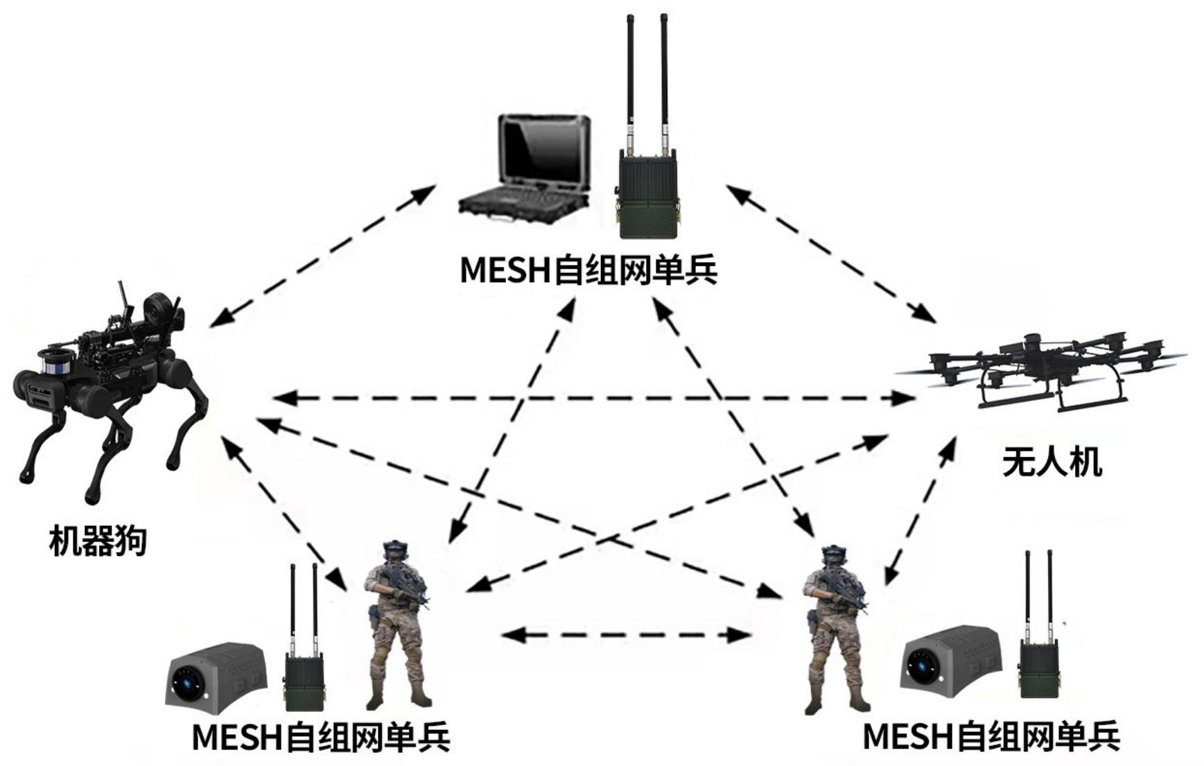 The Blood Wing MESH tactical self-organizing network system, adopts next-generation radio technology, features compact size and portable design, can be handheld or worn, or mounted on unmanned platforms as data transmission channel, has maximum 2W transmission power. This product can rapidly establish reliable wireless links in complex environments, can complete wireless transmission of video, images, voice and data. It based on Mesh wireless ad-hoc networking technology, self-organizing scale ≥64 units, relay ≥10 hops, maximum data rate 96Mbps, can flexibly adapt to rapid Mesh ad-hoc transmission in various complex environments. Can quickly deploy on-site, rapidly establish private broadband network environment, simultaneously can establish bidirectional audio-video communication between front-line and rear command vehicles. Can seamlessly integrate with existing IP wired networks, flexibly expand IP wired networks. Has significant characteristics: long-range, antiblocking, anti-interference, high reliability.